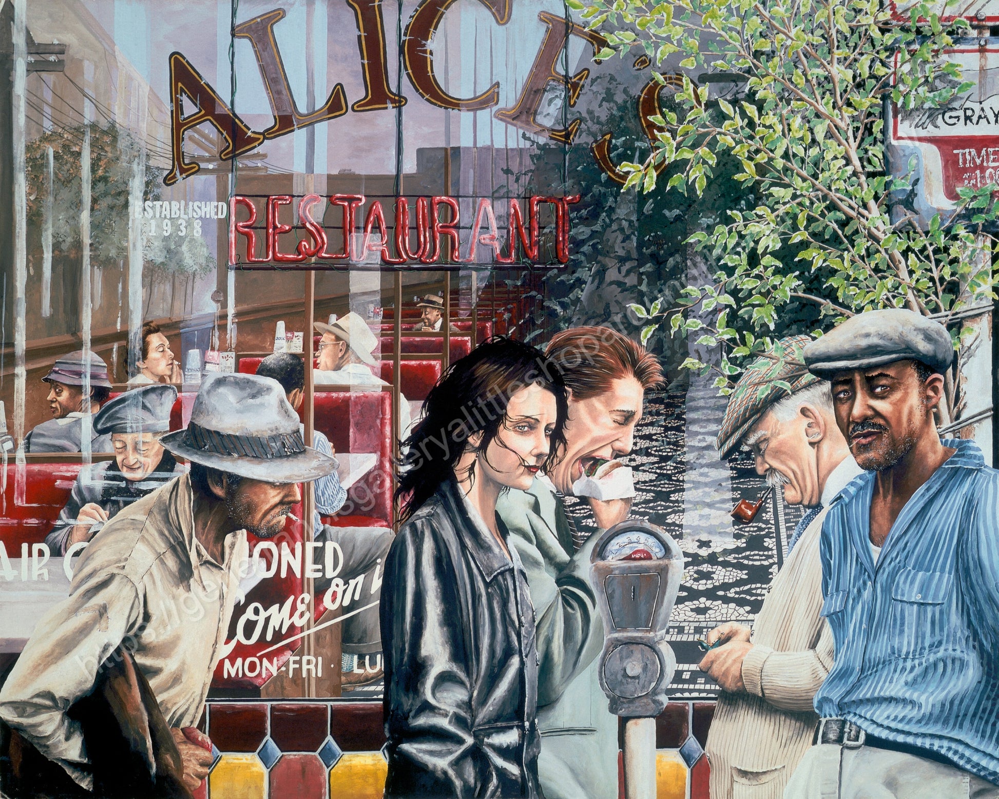 Get lost in the whimsical world of Alice's Restaurant with this charming Gene Francis painting. Perfect for adding a touch of playfulness to any room, this artwork is a must-have for any art collector. Don't miss out on the chance to own this one-of-a-kind piece!